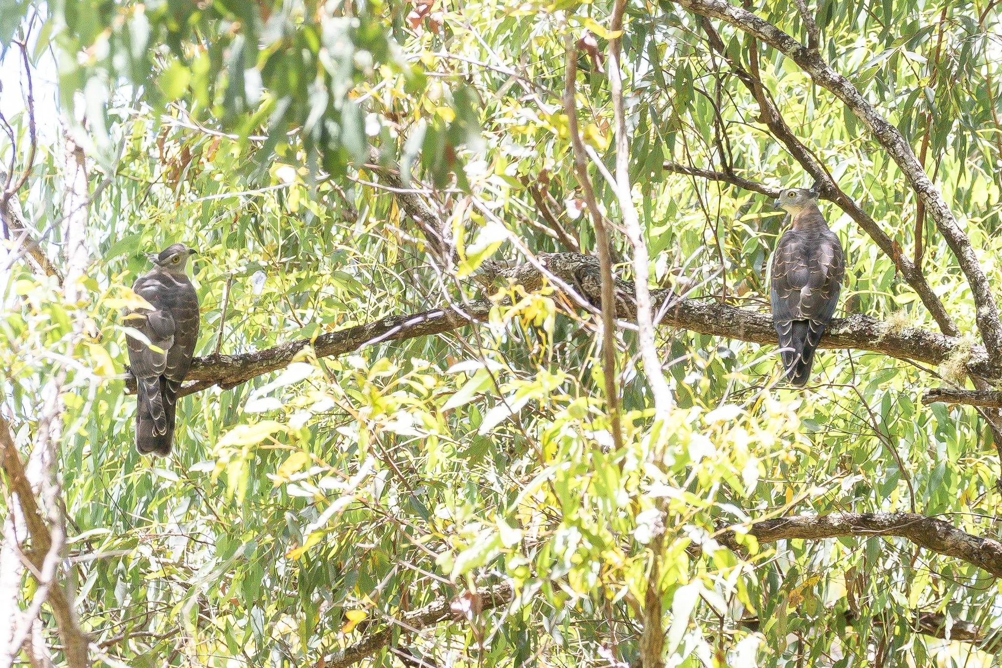 Mount Jerusalem National Park is 50km inland from Byron Bay and lies within the International Birdlife Nightcap Range Important Biodiversity Area (IBA). It is part of the outer rim of the the Tweed/Mount Warning volcano caldera, a volcano active 23 million years ago. Water runoff from the park drains into three catchments, the Tweed River, Brunswick River and the Wilson/Richmond River. On a short walk from the car park, down Middle Ridge Road, we heard Brown Cuckoo-Doves, Spotted Pardalotes, White-throated Scrubwren, Crimson Rosellas, Brown Thornbills, Golden Whistlers, a Grey Shrike-thrush, and saw the two Pacific Baza photographed below. Middle Ridge Road is on Rhyolite rock and has open wet sclerophyll eucalypts on one side and more rainforest flora on the other.